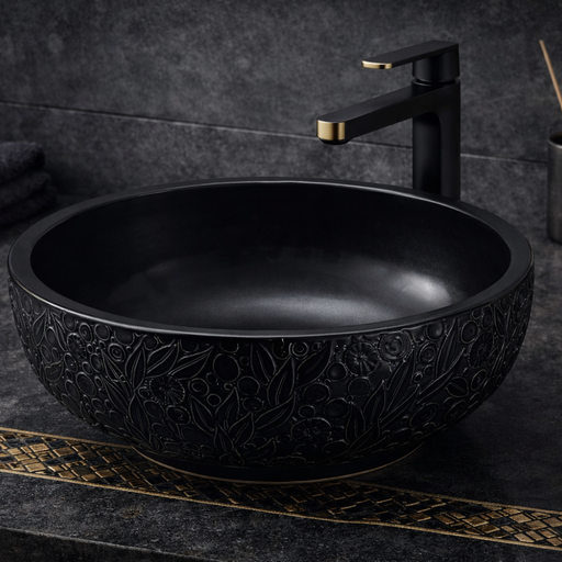 Design-Waschschale aus Keramik Schwarz Handgefertig– Rund 42 × 16 cm